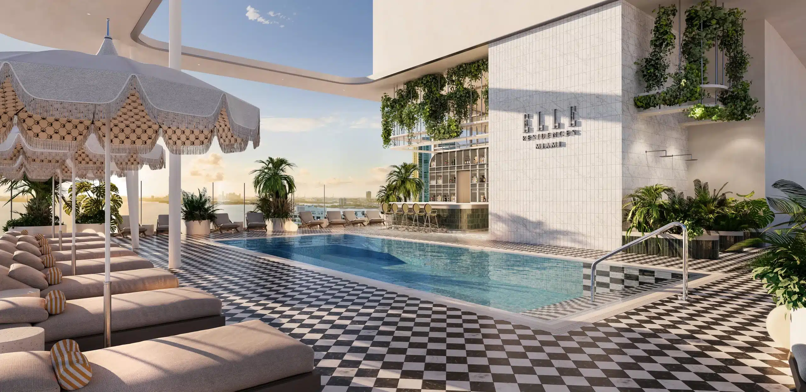 Discover ELLE RESIDENCES MIAMI in Edgewater, featuring 189 fully furnished 1- and 2-bedroom residences. Blending French-inspired elegance with tropical Miami living, every detail is complemented by a curated collection of exclusive amenities designed to enrich your lifestyle.